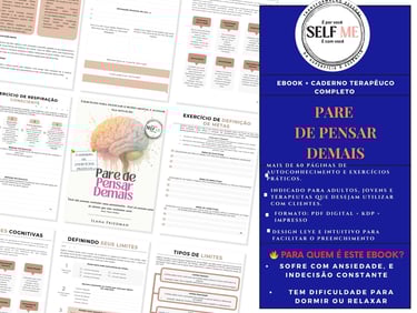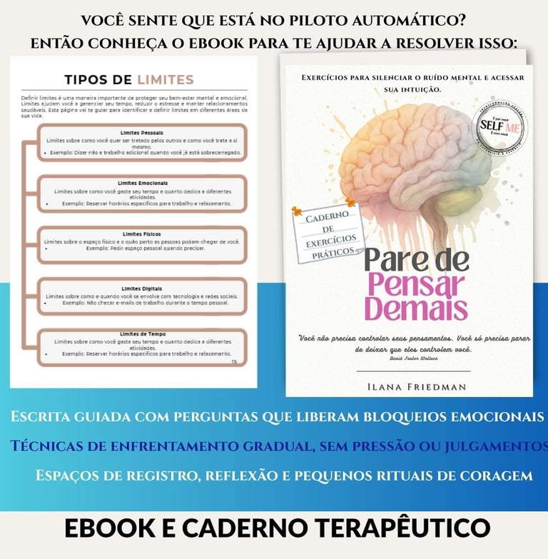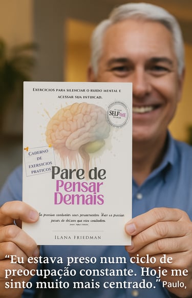 “Pare de Pensar Demais” é um material de autoterapia guiada com mais de 100 páginas práticas e profundas, criado para ajudar você a lidar com a mente acelerada de forma amorosa, realista e transformadora.
