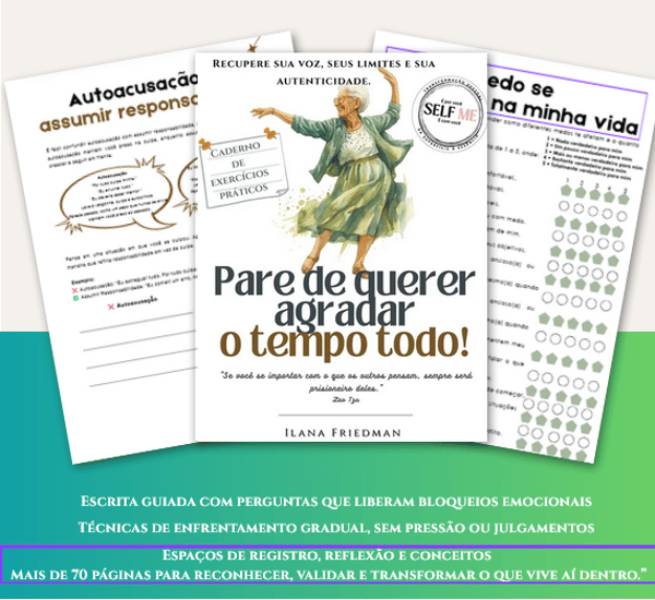 “Pare de querer Agradar o Tempo Todo” é um diário terapêutico e transformador. Um espaço onde você poderá, em 30 dias, revisitar suas escolhas, curar feridas emocionais e se reconectar com sua verdade — aquela que você talvez tenha aprendido a silenciar para caber em padrões ou agradar o outro.